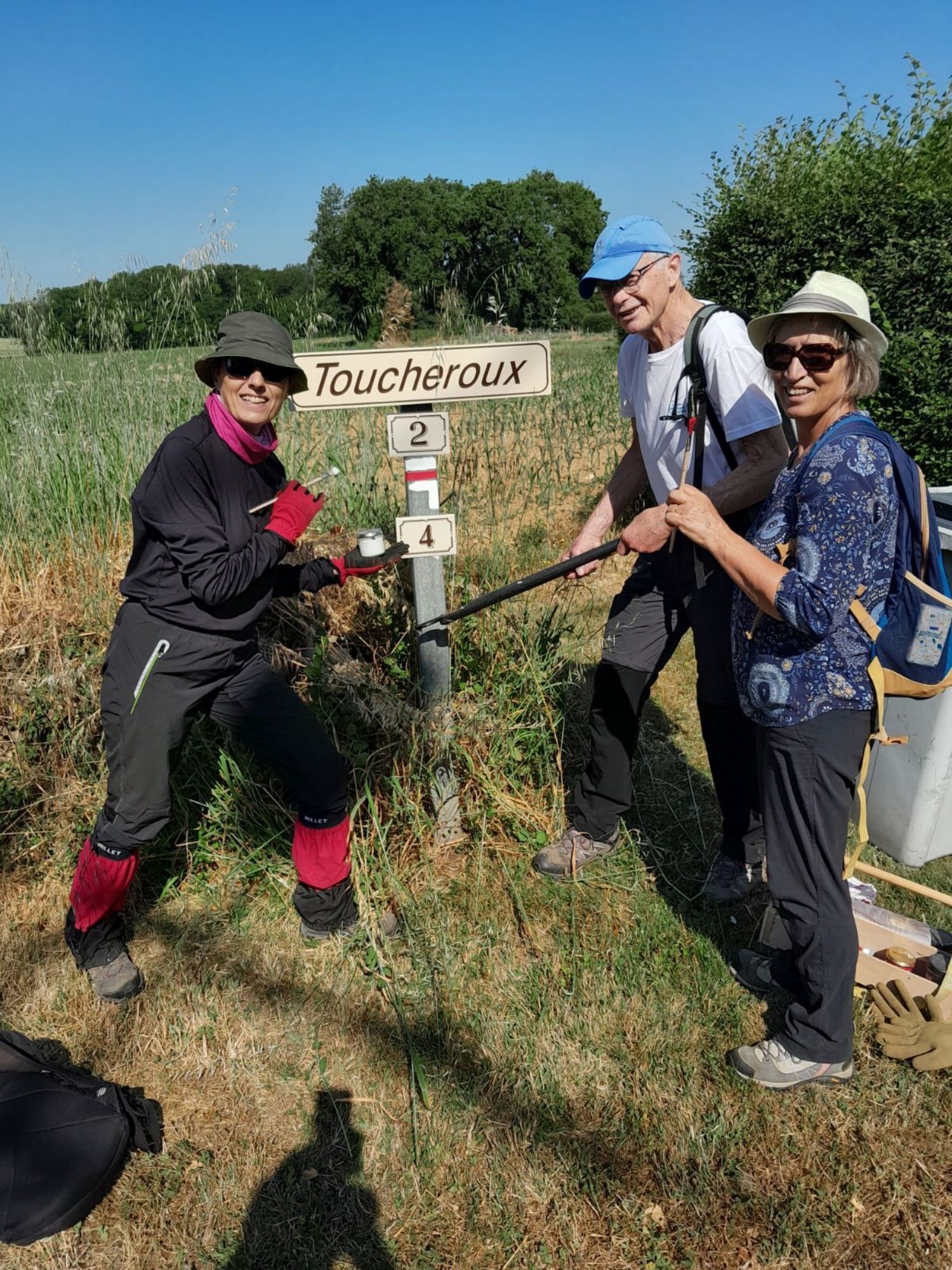 Le 11 juin 2025, 20 adhérents de l'Association se sont ainsi partagé la rénovation du balisage du GR 655-364 sur le tronçon de Poitiers (Pont Saint-Cyprien) à Aigne (commune d'Iteuil), à la jonction avec le GRP des Trois Batailles, au lieudit "La Motte".